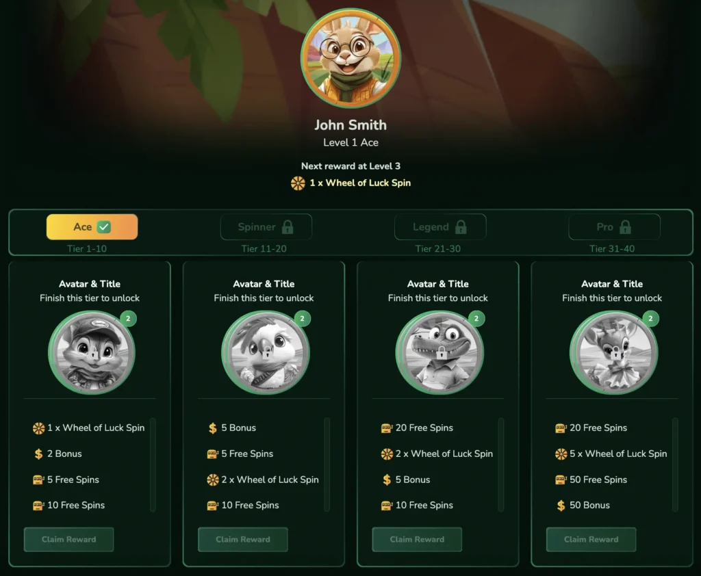 The system is built on three levels — you climb higher simply by playing. For every deposit, bet in slots or any other games, regardless of the outcome, an experience point is awarded. The more active the player is, the faster their status grows. No complicated rules: all rewards are credited automatically, in a clear and transparent way.