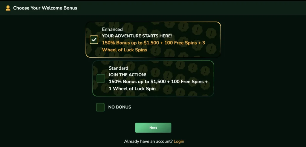 Start your game with a welcome offer. Choose your bonus immediately during registration or later, before your first deposit. Not one, but three different bonuses are waiting for you, offering up to 4000 AUD and 200 free spins.